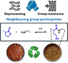 Abstract Recycling thermosetting materials presents itself as a major challenge in achieving sustainable material use. Dynamic covalent cross-linking of polymers has emerged as a viable solution that can combine the structural integrity of thermosetting materials with the (re−)processability of thermoplastics. Thioether linkages between polymer chains are quite common, and their use dates back to the vulcanization of rubbers. While it is known that thioether bonds can be triggered to exchange through transalkylation reactions, this process is usually slow, as thioether moieties not only have to be activated by an alkylating agent, but the activated thioether also has to associate with a second thioether moiety in a classical SN2-type process. Here, we present the rational design of dynamic polymer networks based on simple dithiol-based monomers and a fatty acid derived triene. Two neighboring thioethers can undergo a much faster bond exchange reaction, and we found that the exchange dynamics can be further tuned over almost three orders of magnitude by tailoring the distance between two thioether functionalities. This resulted in thioether-cross-linked materials that could be processed by extrusion, a continuous reprocessing technique that was previously not accessible for this class of cross-linked materials, while still exhibiting appealing creep-resistance below 70 °C.