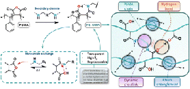 Abstract This study presents poly(styrene-co-maleamic acid)-based monoamide (PS-MMA) covalent adaptable networks (CANs) as a novel class of high performance dynamic covalent polymer networks. PS-MMA CANs are readily synthesized by crosslinking poly(styrene-co-maleic anhydride) (PSMA) copolymers with secondary diamines, introducing a previously unexplored dynamic monoamide exchange chemistry. By tailoring the amine-to-anhydride ratios, crosslink density and viscoelastic properties were finely adjusted, yielding networks with high thermal stability and reprocessability. The dissociation of monoamides into amines and anhydrides, as observed in high-temperature FT-IR analysis, was validated through Density Functional Theory (DFT) calculations. These calculations revealed an enthalpically favored tendency for amines and anhydrides to re-associate into monoamides, confirming their suitability for thermally triggered dynamics and effective viscosity control at increasing temperatures. Rheological analysis of the PS-MMA CANs showed distinct diamine structure-dependent profiles, where the interplay between the chain entanglements, supramolecular interactions and dynamic dissociative monoamide debonding governed their stress relaxation regimes and macroscopic flow behavior.