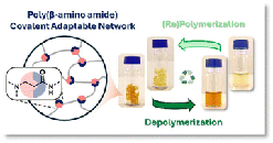 Abstract The growing environmental challenge of non-recyclable thermosets underscores the urgent need for sustainable alternatives. Covalent adaptable networks (CANs) containing dynamic β-amino amide moieties have emerged as promising reprocessable polymer networks, combining mechanical robustness with recyclability. In this work, we elucidate the exchange kinetics of both the well-established (retro)-aza-Michael addition and a newly identified transamidation pathway that is operative in β-amino amides. Systematic catalyst screening reveals that acidic catalysts significantly enhance viscoelastic control, thereby improving (re)processing efficiency. Furthermore, we introduce a chemical recycling protocol that enables the recovery of the original amino building blocks with up to 86% purity, demonstrating their direct use as feedstock in material (re)synthesis. These insights advance the fundamental understanding of dynamic bond exchange in β-amino amide based CANs and establish a viable route towards circular thermoset materials for numerous applications.